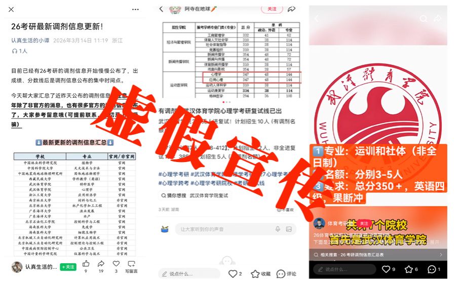 近期,学校关注到部分网络平台和个人发布涉及我校2026年研究生招生复试、调剂等环节的不实信息,误导考生,严重干扰了学校研究生招生工作秩序,损害了考生和学校的合法权益。现就相关情况严正声明如下: